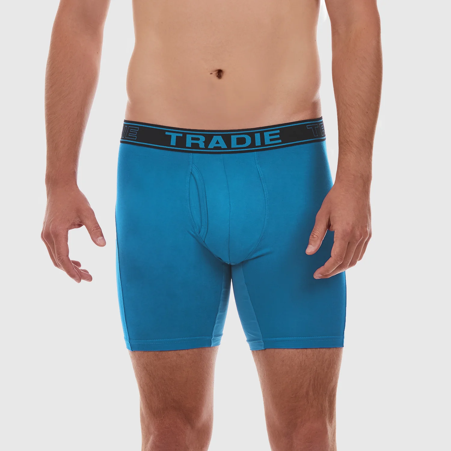 Tradie No Chafe Quick Dry undies have been designed by Aussies for Aussies. The Quick Dry fabric is polyester made from recycled plastic so youre doing your bit for the planet. The GLIDEY inner leg panels ensure no more chafing EVER again. Our unique 3D comfort pouch has a generous fly opening so you can FREE WILLY whenever required whilst the long leg design ensures no ride up undies. Give them a try youll love them.