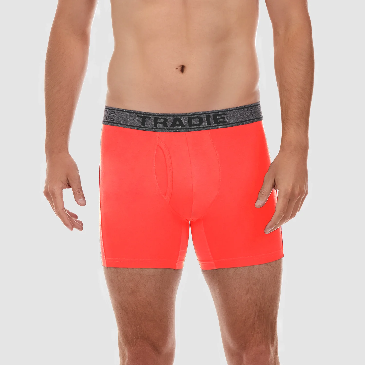 TRADIE No Chafe Quick Dry undies have been designed by Aussies for Aussies. The Quick Dry fabric is polyester made from recycled plastic so youre doing your bit for the planet. The GLIDEY inner leg panels ensure no more chafing EVER again. Our unique 3D comfort pouch has a generous fly opening so you can FREE WILLY whenever required whilst the mid length design ensures no ride up undies. Give them a try youll love them.