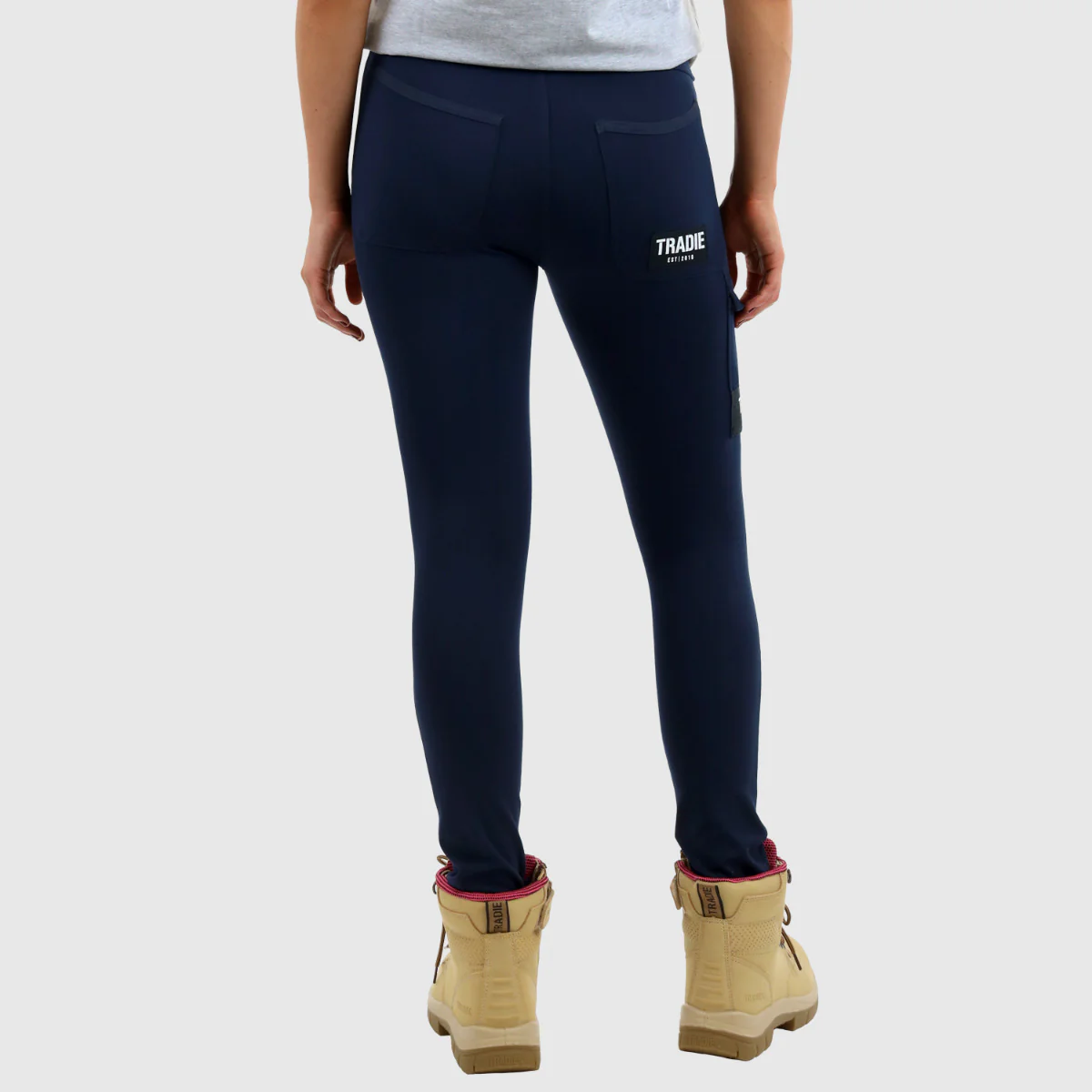 Tradie Workwear legging new to the women's range with stretchy fabric that moves with you. It's tough as nails and hugs your body just right. No more saggy pants thanks to the stretchy waistband, and it's snug through the hips and thighs for that true blue Aussie fit. With 4 in 1 pocket storage and back pockets that can take a beating and reinforced knees for extra protection. With a skinny leg style, you'll be ready for anything from loading the ute to Friday night catch ups.